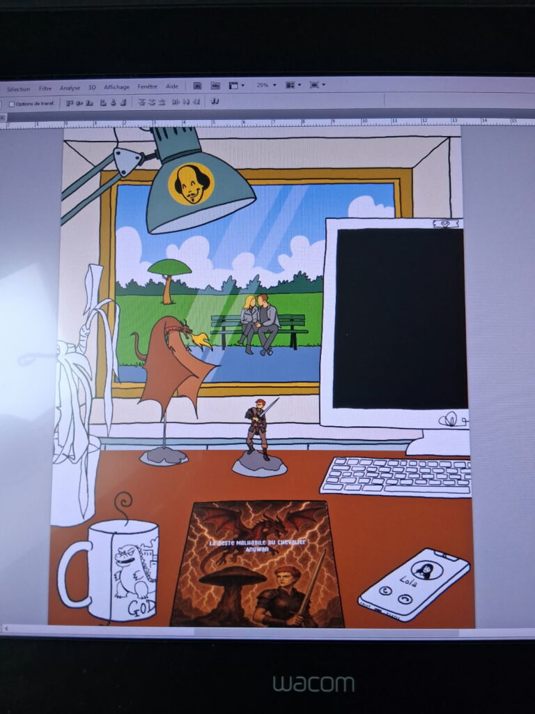 Je vais donc vous partager le making-off de la couv de ce roman de fantasy avec un téléphone portable dedans, qui est aussi un roman sur l'écriture d'un roman de fantasy.