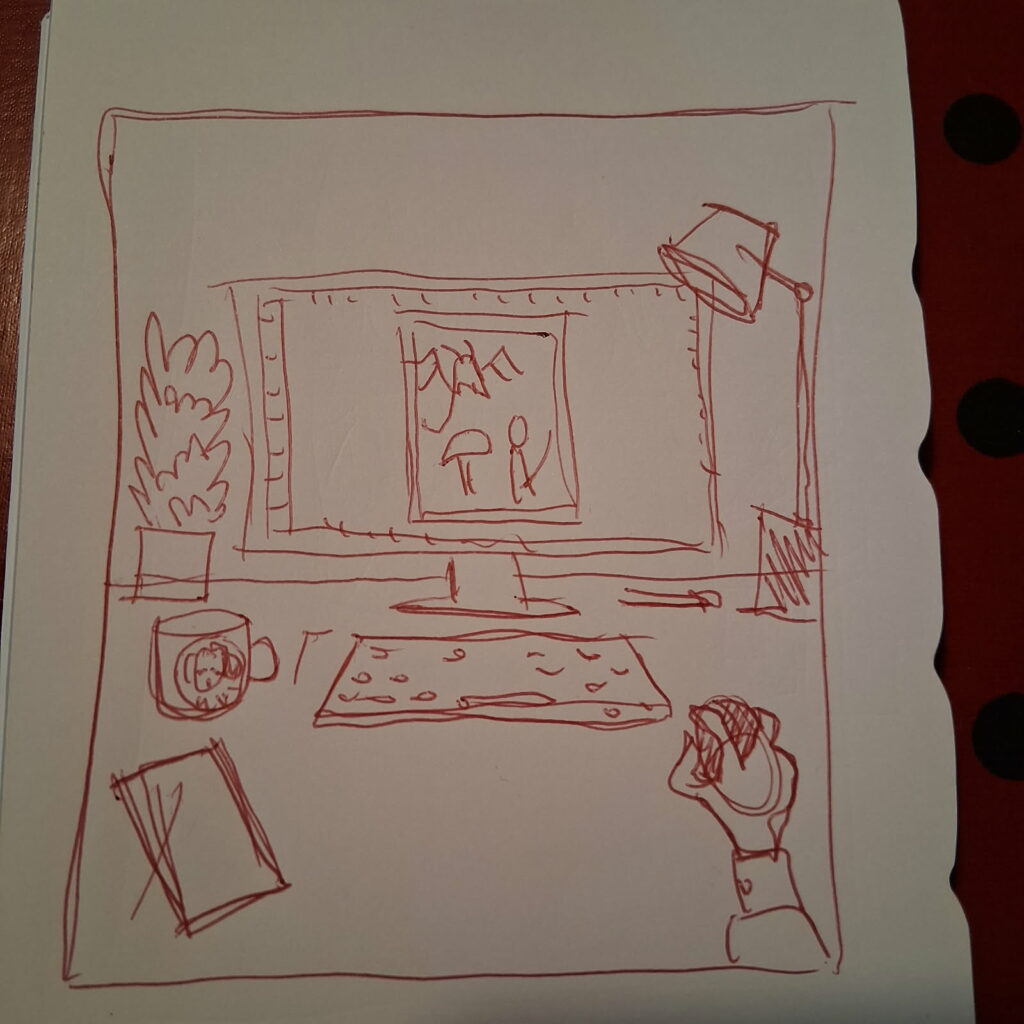Après un premier brief, le concept de la couv ressemblait à ça.