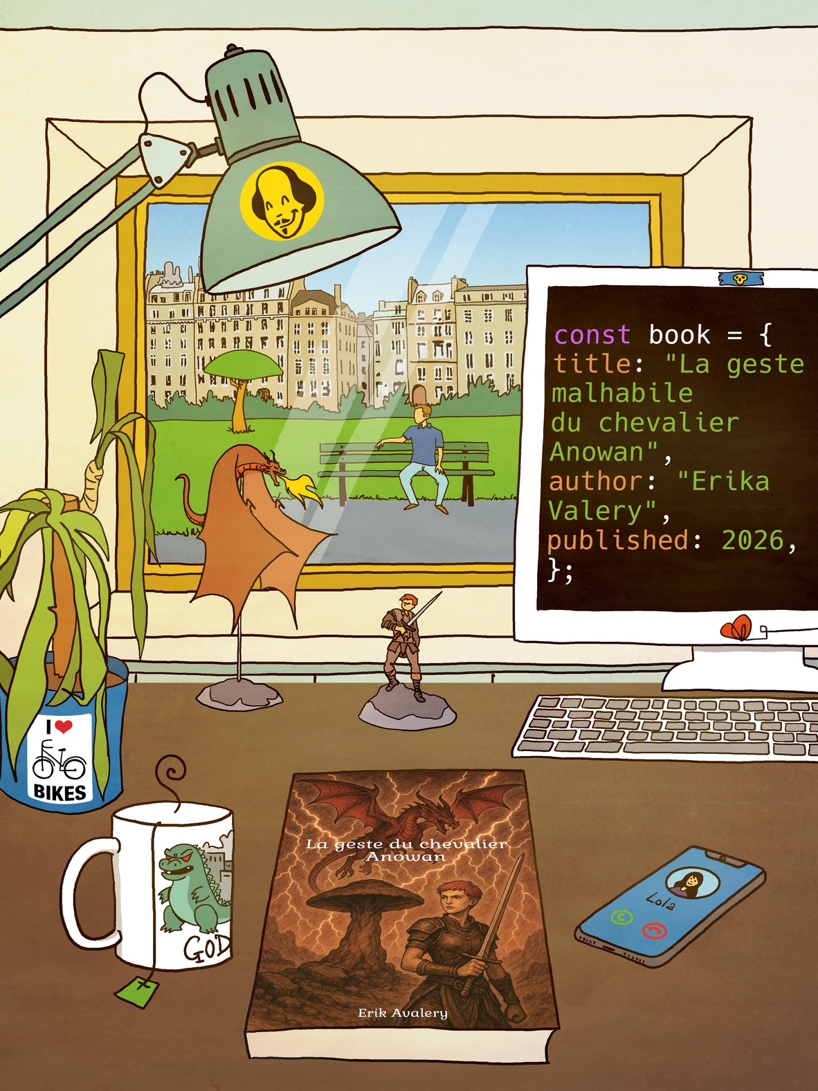 Je vais donc vous partager le making-off de la couv de ce roman de fantasy avec un téléphone portable dedans, qui est aussi un roman sur l'écriture d'un roman de fantasy.