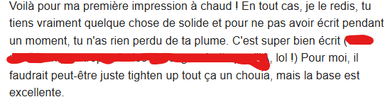 - Le premier retour de bêta-lecture
