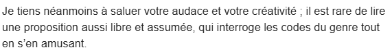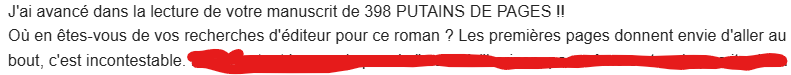 - Autre réponse d'éditeur (négative mais qui fait bien plaisir quand même ^^)